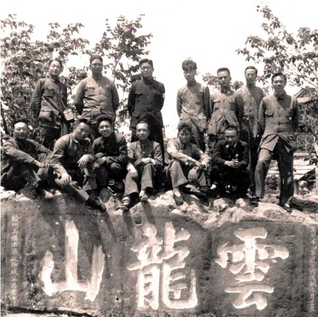 徐州突围前,记者们在云龙山合影。前排左起第二人为范长江;后排右起第三人为陆诒。