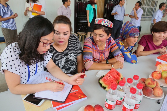 从8月16日开始,中央新闻采访团分两组赴和田、阿克苏地区采访。三天的时间里,大家深入乡村、社区、学校、住村工作组等地,就业、天然气入户工程、双语教育、村基地文化建设等话题成为大家关注的热点。