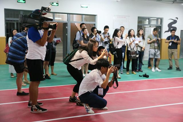 中央新闻采访团在库尔勒市第六中学采访 新疆经济报高原玲子 摄