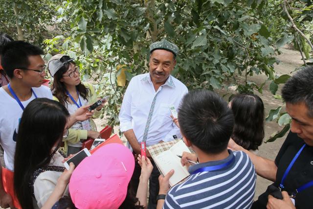 中央新闻采访团采访场景 新疆日报阿扎提 摄