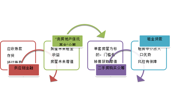 P2P平台道口贷就采用的这种方式,它以碧桂园上下游供应商的应收账款、存货、预付账款作为转让标的,以碧桂园作为承付企业,获得债权标的后,再通过P2P平台进行融资。