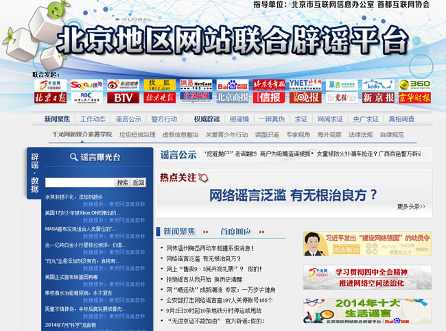 辟谣平台最初由北京属地6家重点网站共同发起,截至2015年8月,已有45个成员,涵盖网站、报纸、电台、电视台、社会组织,汇集的各类辟谣信息超过百万条。