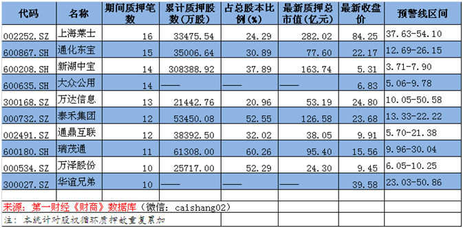 据统计,今年以来有554家上市公司的控股股东进行过股权质押,累计达1314笔,其中11家公司大股东今年以来进行过10笔以上的股权质押。上海莱士(002252.SZ)一直是股权质押的青睐者,自上市以来累计进行过上百笔股权质押。其大股东仅今年就行了16笔股权质押。