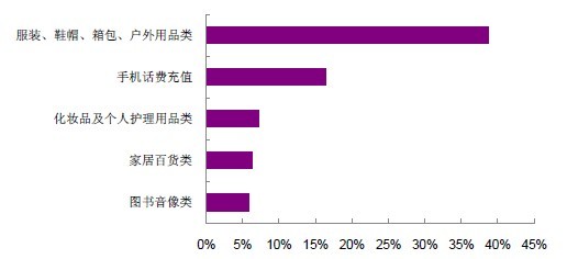 图1:2012年中国网购用户常购商品种类TOP5