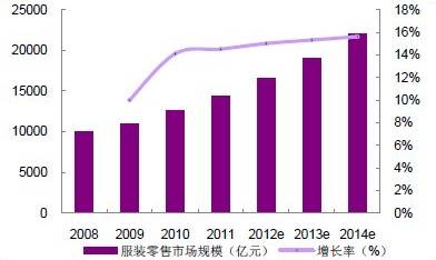 图3:服装零售市场规模(亿元)