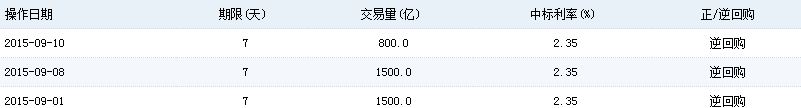 今日,央行以利率招标形式开展500亿元7天期逆回购操作,中标利率为2.35%,与上次持平。另外,9月8日的1500亿逆回购今日到期。这是本月央行第三次进行逆回购操作。