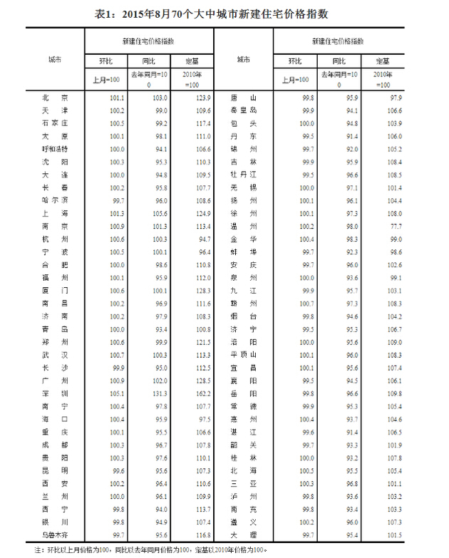 (二)与去年同月相比,70个大中城市中,价格下降的城市有62个,上涨的城市有7个,持平的城市有1个。8月份,同比价格变动中,最高涨幅为30.3%,最低为下降10.2%。