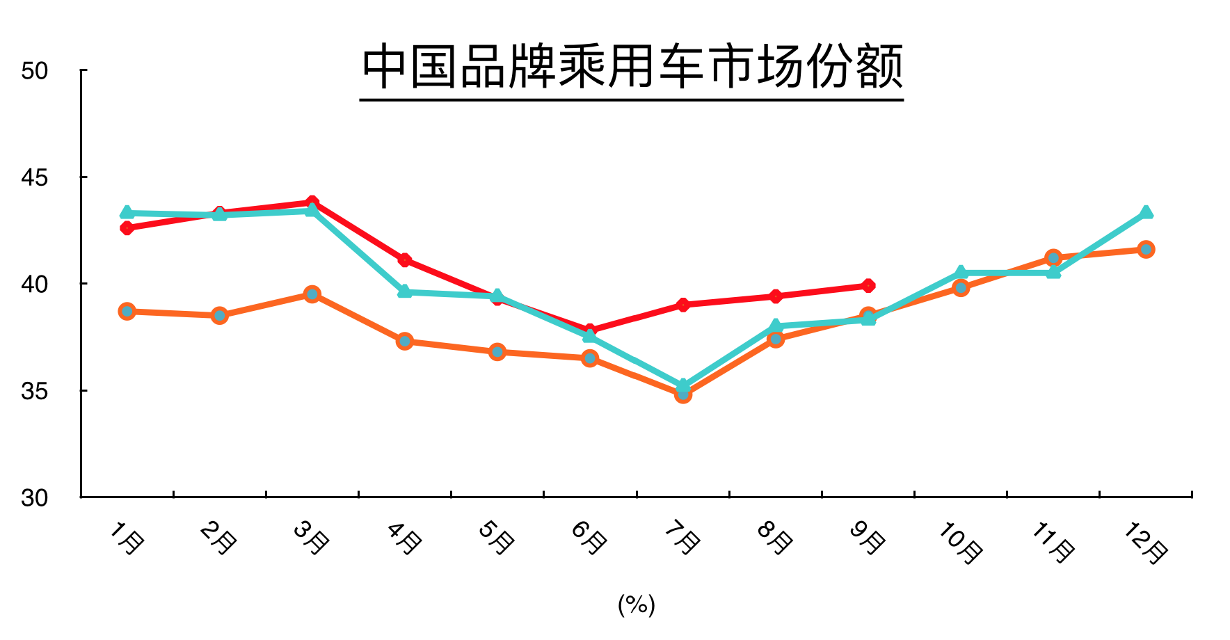 二是中国自主品牌乘用车市场份额保持增长。9月中国品牌乘用车销量为69.86万辆,同比增长6.9%,所占市场份额为39.9%,提高了1.4个百分点。其中,轿车市场份额为19.9%,下降1.5个百分点;SUV市场份额为52%,提高2.9个百分点;MPV市场份额为88.3%,增长2个百分点。董扬表示:“在整个产销量放缓的情况下,中国品牌会进一步分化。一部分优秀的品牌会胜出,一部分差的品牌将会退出。这对于中国品牌和中国汽车产业的发展都是有利的。”