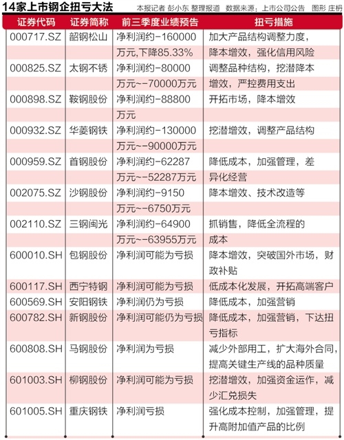 去年亏损13.88亿元的韶钢松山(000717.SZ),更是再次曝出巨亏,前三季度预计亏损16亿元。“整个行业都非常不景气。”韶钢松山董秘办的一位人士对21世纪经济报道记者说,目前公司仍在采取降本增效、加强营销等措施扭转颓势。