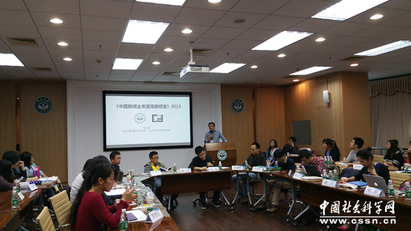 10月11日,在广州中山大学召开的第二届华南青年传播学者论坛上,中山大学传播与设计学院举行了《中国新闻业年度观察报告2015》首发式。来自北京大学、武汉大学、香港城市大学、暨南大学等地从事新闻传播研究的青年学者出席会议。首发式后,与会学者还就该报告相关内容展开了研讨。