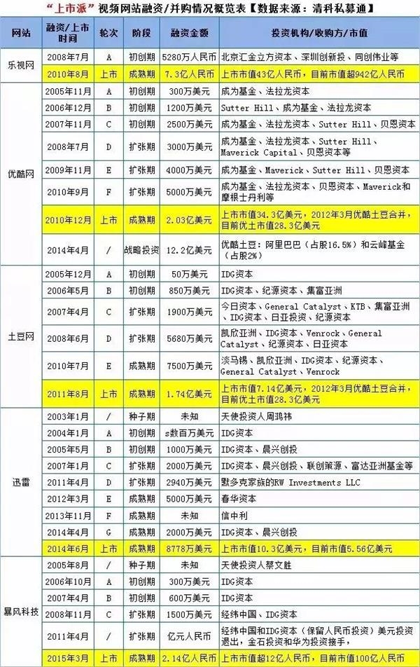 I、上市派代表:乐视网、优酷网、土豆网、迅雷、暴风影音
