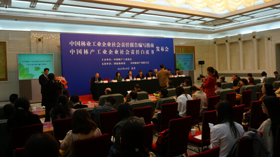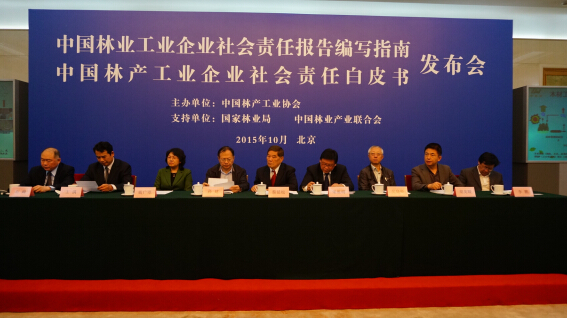 原林业部副部长,中国绿化基金会顾问蔡延松、国家林业局计财司副司长,全国木材行业管理办公室主任孙建、北京林业大学校长宋维明、国家林业局经济研究中心党委书记戴广翠、国家发改委农经司副司长吴晓松、中国林业产业联合会副会长兼秘书长王满、中国经济报刊协会副会长兼秘书长胡英暖等出席发布会,并为《中国林产工业企业社会责任白皮书》参编企业颁发证书。中国林产工业协会秘书长石峰主持会议。