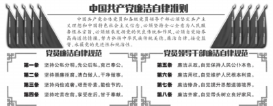 准则修订过程中,突出重点、删繁就简,坚持正面倡导、重在立德向善,将“8个禁止”“52个不准”等负面清单内容移入同步修订的纪律处分条例,使现行的18条、3600余字的准则,浓缩成8条、309字的自律标准。