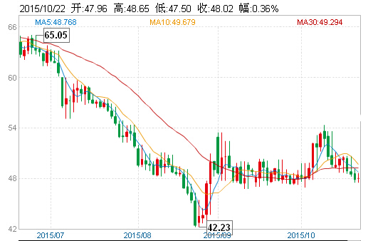 纽约时间10月21日13:30,NYMEX11月原油期货收跌1.09美元或2.4%,报每桶45.20美元,盘中短暂跌破45美元,收盘触及10月1日以来最低位。