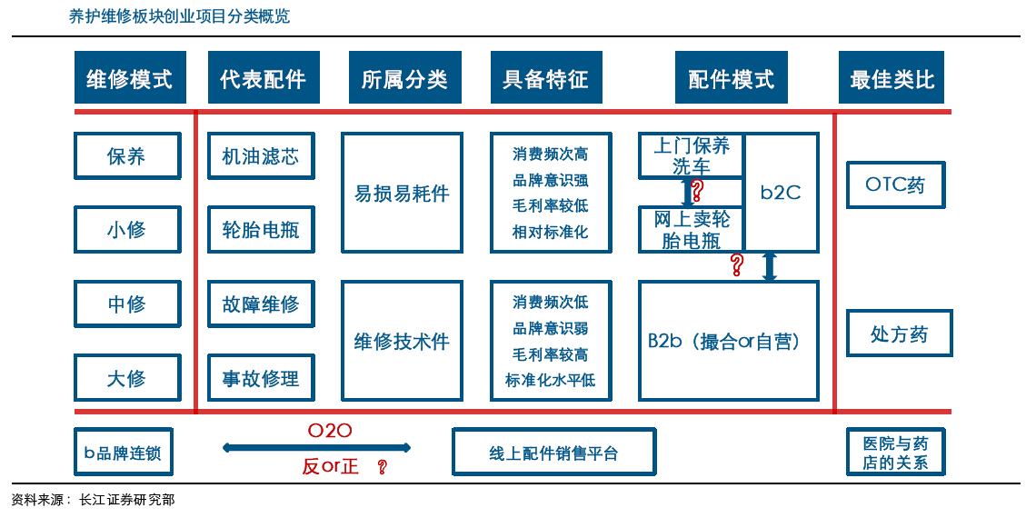 5.配件的分类多、复杂程度高,而维修店国内目前处于行业集中度低、良莠不齐的状态。b品牌连锁类创业项目是希望直接开连锁化的维修店,提高行业的集中度,解决车主修车难修车贵的问题,但有一点在于:维修店配件采购模式是在发生变化。传统汽配城采购模式效率过于低下,未来是否可能直接实现线上采购,送货上门的模式,待验证。