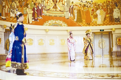 洛阳市明堂遗址内正在演绎唐朝武则天时期外国使臣入朝觐见的场景。本报记者 吴凡 摄