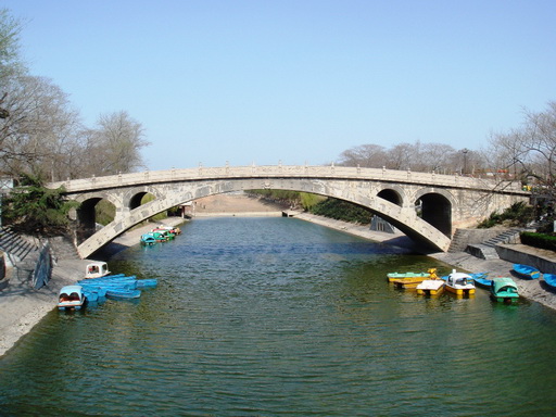 赵州桥位于河北省赵县境内,因赵县古称赵州而得名(又称安济桥),赵州桥建于隋开皇年间(公元595-605年)。据唐中书令张嘉贞《安济桥铭》记载:赵郡洨河石桥,隋匠李春之迹也。距今已有近1400年历史,它不仅是我国而且也是世界上现存最早,保存最完整的巨大石拱桥,对世界后代的桥梁建筑有着十分深远的影响,特别是拱上加拱的敞肩拱的运用,更为世界桥梁史上的首创。