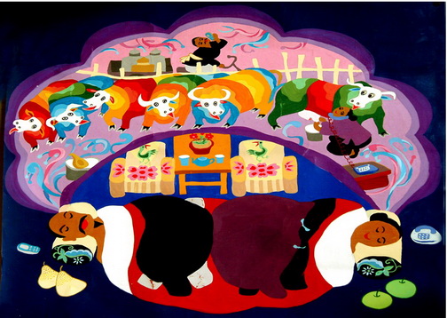 辛集农民画历史悠久,源远流长。早在明清时期,这里的人们就有画、绣、剪、编等,民间传统。五十年代,以壁画为主要形式的束鹿农民画,清新质朴,范围广泛,人民美术出版社曾经出版过《河北束鹿县壁画选》和《诗洋画海金束鹿》两本画册。辛集农民画题材丰富,充满浓郁的乡土气息;构思奇巧,抒发了作者生活的心声;画法细腻纯朴,不拘一格;色彩凝重艳丽,具有无穷魅力。它吸取了剪纸、吊挂。民间印染、地方戏曲等姊妹艺术的营养并融入画中,形成了稚拙纯朴、雅俗共存的独特风格。
