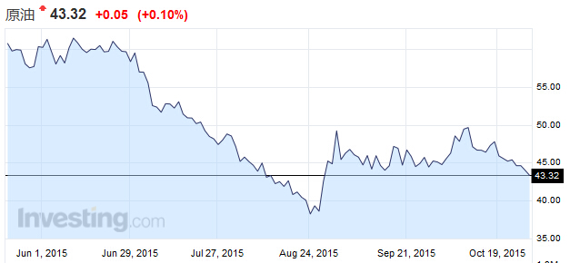 油价周二连续第三个交易日下滑,跌至近两个月低位,美国原油最新报43.32美元/桶,布伦特原油最新报47美元/桶。全球供应持续过剩,而美国公布的数据显示原油库存续增。