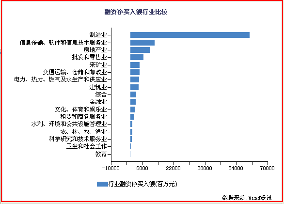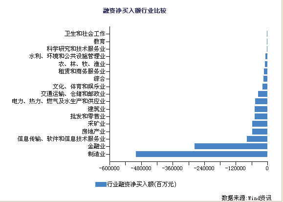 第一财经《财商》(微信号:caishang02)统计显示,10月至今,制造业、信息技术行业、房地产行业、批发零售业、交通运输等领域融资净买入额领先。其中排名第一的制造业融资净买入额为609.35亿元。