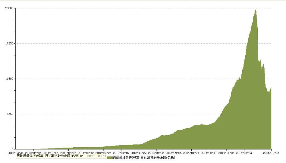 Wind数据显示,2010年3月底,两融市场开放申报当天,两融余额仅为0.07亿元。在随后五年多的时间里,两融余额梯次攀升。