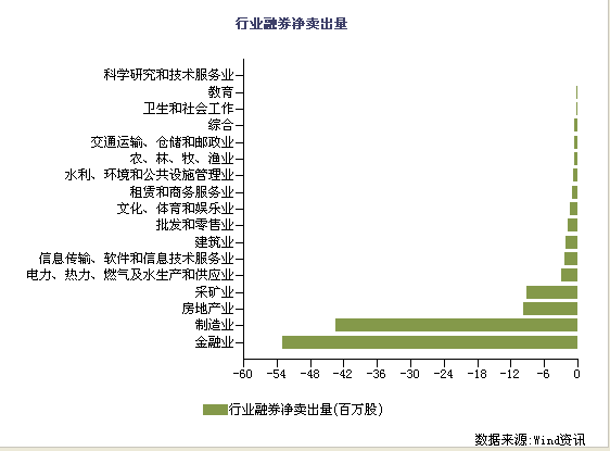 图4:自2015年6月15日至9月30日两市融券净卖出量行业对比
