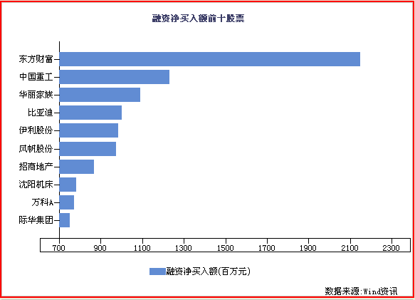 个股方面,东方财富(300059.SZ)、中国重工(601989.SH)、华丽家族(600503.SH)、比亚迪(002594.SZ)、伊利股份(600887.SH)等股票最受融资客追捧。其中东方财富10月至今融资净买入额21.48亿元。占东方财富A股总流通市值的2.89%。
