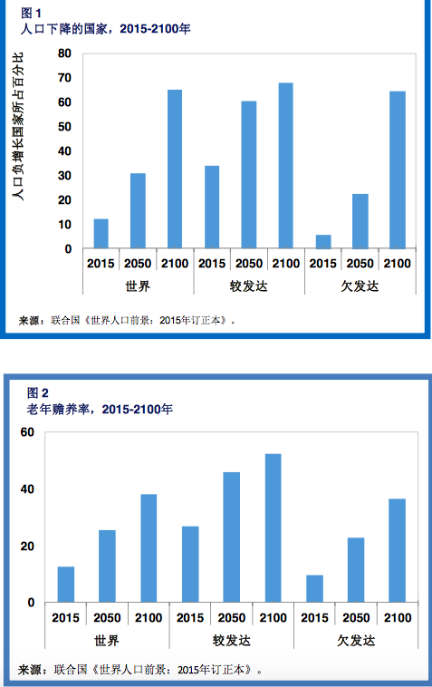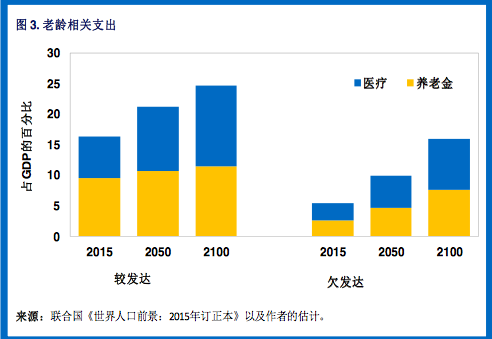 IMF报告指出,人口学家往往低估了生育率和死亡率的下降,而生育率下降将增加与年龄相关的支出,到本世纪末,较发达国家将因此而额外增加 GDP 的 8 个百分点,欠发达国家则将增加 4.5 个百分点。