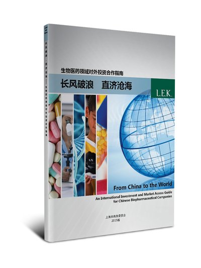上海2015年11月3日电 -- L.E.K.(艾意凯)咨询于近日发布了国内首部关于生物医药、生物技术及医疗保健领域对外投资合作的指引《长风破浪,直济沧海——生物医药领域对外投资合作指南》。该指南由上海市商务委员会委托艾意凯咨询完成,高伟绅律师事务所提供对外投资法务领域的专业意见。《指南》旨在阐述中国生物医药企业从事境外投资合作以及引进海外先进技术时所面临的机遇及挑战,为该产业的商业领袖们提供简明、全面的信息支持与指导。