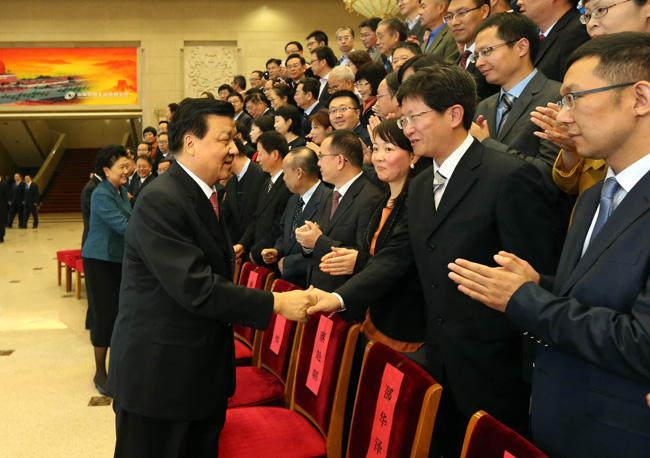 11月8日,第二十五届中国新闻奖颁奖报告会在北京举行。中共中央政治局常委、中央书记处书记刘云山会见获奖代表。 新华社记者刘卫兵摄