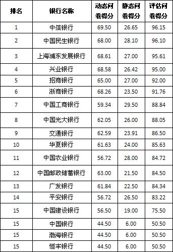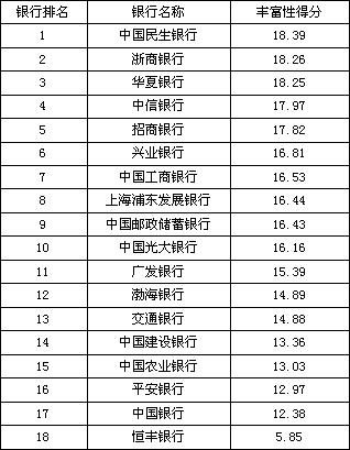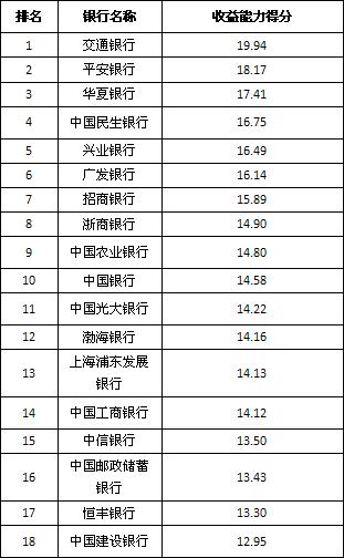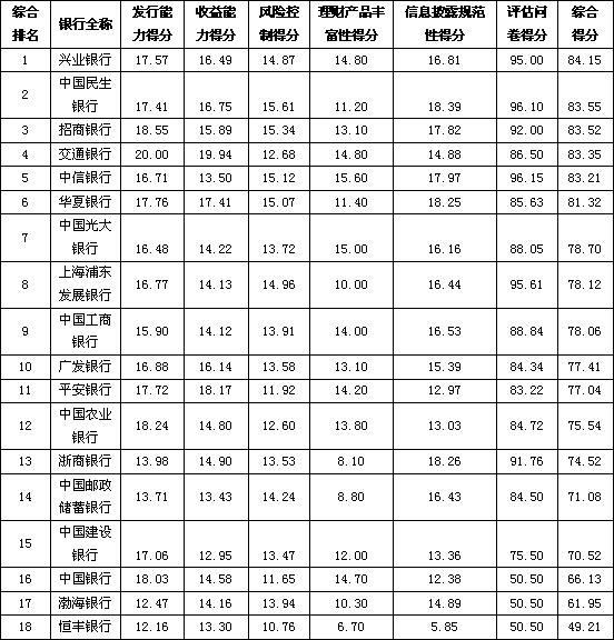 银行理财能力综合排行榜