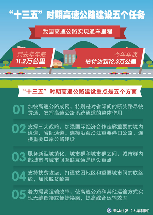 图表:“十三五”时期高速公路建设五个任务 新华社发 大巢制图