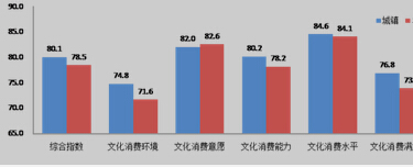中国文化消费指数(2015)通过对覆盖全国31个省市,涉及城乡、性别、年龄、学历等各类人群的文化消费数据进行分析计算得出。指数结果显示,我国文化消费综合指数由2013年的73.7增至2015年的81.2,平均增长率为5%。文化消费环境、文化消费能力、文化消费水平指数等一级指标均呈上升趋势,且文化消费环境指数上升速度最快,平均增长率为11.33%。文化消费意愿指数在经历了2014年的上涨后,小幅回落,文化消费满意度指数在2014年有所下降后,出现了大幅提升。