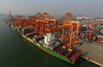 广西钦州保税港区码头集装箱待发。 新华社记者 黄孝邦/摄