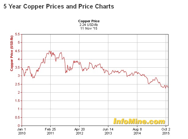 但是,好景有限。在享尽了铜价走高所带来经济的红利后,自去年起,智利政府不得不面对铜价一路下滑的现状。对于下滑的原因,威廉姆斯委婉地告诉《第一财经日报》记者,“这是个多种因素合力的结果。其中,中国经济增速的变化对智利矿业发展非常重要。”威廉姆斯说道。此外,她指出,需求减少、全球范围内大宗商品价格走低,使得一些投资者转向其他领域,再加上智利货币比索的贬值,都影响了铜矿的价格。威廉姆斯表示,智利铜矿产业45%的生产价格由比索兑美元的汇率决定。
