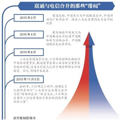 今年2月有消息称,中国电信与中国联通合并,中国移动与广电网合并。受传闻影响,A股中国联通、港股中国电信和中国移动股价都大幅上涨。但很快该传闻就被打破,联通方面表示闻所未闻,电信方面也表示没听说,中国移动表示,没有接到过任何相关通知。
