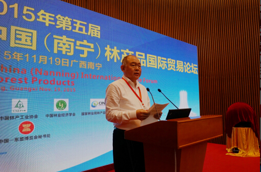 据介绍,第五届中国(南宁)林产品国际贸易论坛由中国林产工业协会、中国林业经济学会、国家林业局林产品国际贸易研究中心、国际木文化学会、中国--东盟博览会秘书处共同主办。原国家林业部副部长蔡延松,国家林业局计财司副司长、全国木材行业管理办公室主任孙建,国内外林业经济界林产品国际贸易方面专家,国际森林认证、木材合法来源认定相关的非政府组织、相关协会及企业代表,中国国家林业局负责国际贸易方面的关司局、单位领导,中国林产工业协会友邻单位的代表和协会会员中首批通过中国木材来源合法化认定的企业代表等中外嘉宾出席论坛。中国产业网总编辑张继进应邀出席论坛。