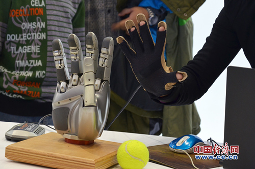 灵巧机器手模仿人动作 中国经济网记者冯虎摄