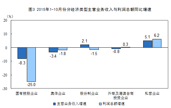 规模以上工业企业中,1-10月份国有控股企业实现利润总额9080.6亿元,同比下降25%;集体企业实现利润总额395.3亿元,下降1.8%;股份制企业实现利润总额32698.7亿元,下降1.5%;外商及港澳台商投资企业实现利润总额12082.9亿元,增长0.3%;私营企业实现利润总额17511亿元,增长6.2%。