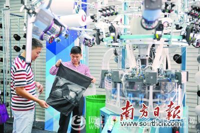 2015中国沙溪服装电子商务交易会上,参展商展出新应用的智能机器。