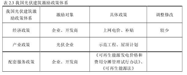 在光伏建筑推广过程中,政府的政策始终起着主导作用,为促进光伏建筑发展,我国光伏建筑的主要政策有: