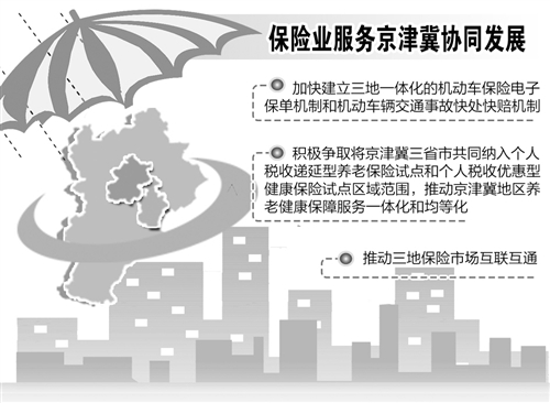 《中国保监会关于保险业服务京津冀协同发展的指导意见》提出,将加快建立三地一体化的机动车保险电子保单机制和机动车辆交通事故快处快赔机制,积极争取将京津冀三省市共同纳入个人税收递延型养老保险试点和个人税收优惠型健康保险试点区域范围,推动京津冀地区养老健康保障服务一体化和均等化