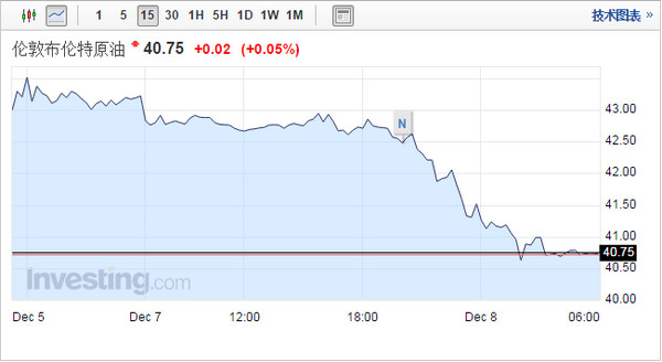 伦敦ICE欧洲期货交易所1月份交割的布伦特油价跌2.77%美元,跌幅5.3%,报每桶40.73美元。