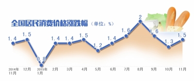 昨天国家统计局发布的数据显示,11月全国居民消费价格总水平(CPI)同比上涨1.5%,涨幅较10月上涨0.2个百分点。至此,我国CPI涨幅已经连续3个月处于“1时代”。