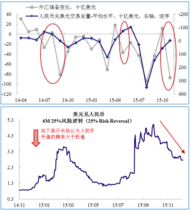 对此,兴业证券首席宏观分析师王涵认为无需担忧。“外储下降更多源于估值变化。若美元资产在外储占比60%,则美元升值可以解释外储下降的一半以上;此外,人民币交易量下降、衍生品隐含贬值预期下降,均指向人民币贬值预期并未升温。”