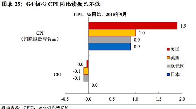 油价暴跌导致的通缩风险会否阻碍联储年内加息?章俊告诉记者:“这主要还是美联储所观测的物价指数更多的是核心CPI而不是广义CPI。反观美国的核心CPI(去除能源和食品)稳步上升的趋势已经非常明显,截至10月已经连续两个月稳定在1.9%。鉴于美国劳动力市场的天平开始向供给端倾斜,未来工资水平可能会持续反弹,这会令核心CPI随时突破2%的目标值。因此美联储不必拘泥于一定要严格完全满足所有条件才考虑加息。”