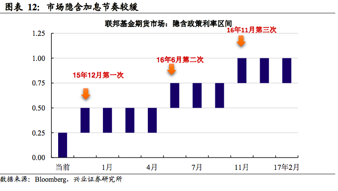 瑞银预计,2016年美联储每次加息幅度为25个基点,全年或加息4-5次,当联邦基金利率加至1%时,美联储可能会驻足观望。总体而言,上半年的节奏会比较紧凑(front-loaded)。
