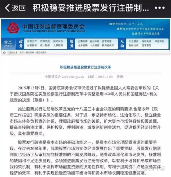 作为2015年资本市场改革的头等大事,注册制曾被市场各方寄予厚望,后因《证券法》修订的延迟而搁置,当大家都预期着注册制将在明年的某时某刻推出时,在2015年的年尾,注册制以授权国务院的形式出现,这一涉及市场参与主体的“牵牛鼻子”的工程准备如何?背景怎样?将给资本市场带来些什么?这些投资者关心的问题迫切需要得到回答。