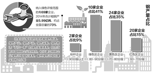 据悉,此次纳入绿色评级范围的有69家钢企,合计粗钢产量5.99亿吨(2014年),约占全国总量的73%,基本代表了我国钢铁产业的主流。该评级得到了环境保护部环境工程评估中心的支持。