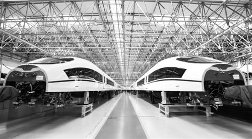 12月11日,在中车长客高速动车组制造中心,两辆高速动车在进行装配工序。产业结构优化、产业升级、新兴产业发展等,是供给侧改革的重要内容之一。 新华社记者 张楠摄